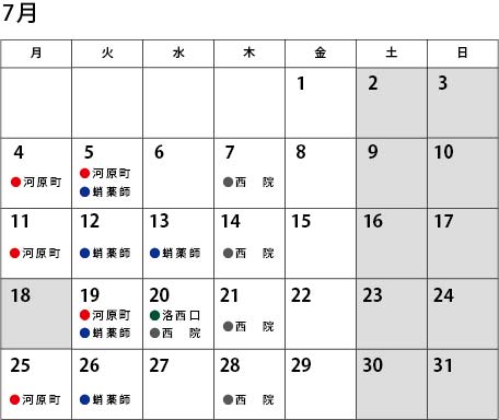 お知らせ 2022.06.24 7月の店休日のお知らせ 7月の各店舗のお休みは下記の通りです。 ※ 祝日の関係で一部通常と店休日が異なりますのでご注意ください。 今年は3年ぶりに祇園祭が行われますね☆ お祭りの帰りなど、店内涼しくしてお待ちしております。 前の記事へ 次の記事へ